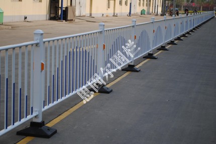 交通隔離柵欄的顏色主要是藍色、白色、黑色;